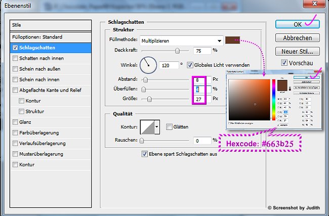 und 32 einen Schatten geben. Ich nahm Alien Skin Eye Candy 5: Impact