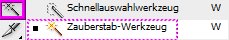 Element 22 duplizieren. Element 22 Kopie vertikal spiegeln, Deckkraft auf 20% setzen und etwas nach unten schieben, überstehendes wegradieren. Die Kopie unter das Original anordnen.