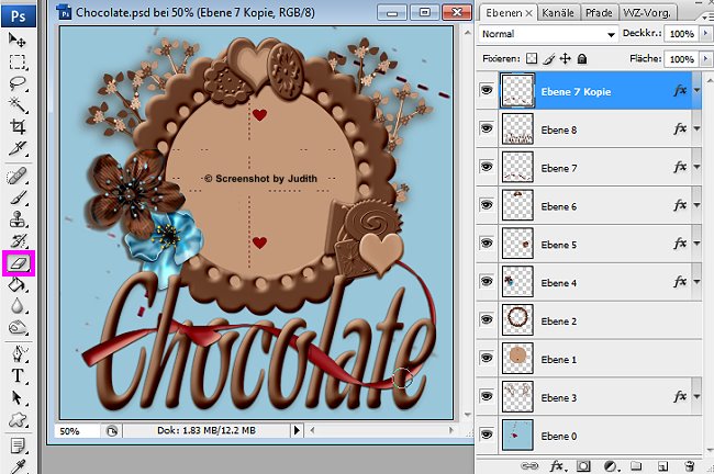 überstehendes wegradieren. Die Kopie unter das Original anordnen.