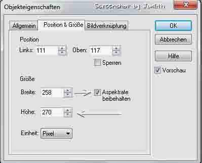 Rechtsklick- Eigenschaften, Position und Gröpe , Aspektrate beibehalten und au 150 Pixel Höhe verkleinern.